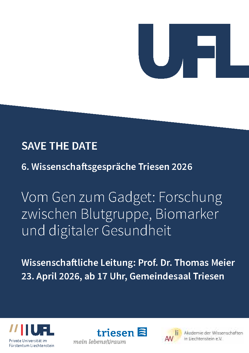 Gemeinsam mit dem Verein Akademie der Wissenschaften in Liechtenstein e.V. haben die Private Universität im Fürstentum Liechtenstein (UFL) und die Gemeinde Triesen 2019 die «Wissenschaftsgespräche Triesen» ins Leben gerufen. Ziel dieser Veranstaltung ist es, der Bevölkerung in Liechtenstein und der Region eine Plattform anzubieten zur Informationsbeschaffung, kritischen Auseinandersetzung, Dialog und Diskussion über Wissenschaft, Forschung, Medien und Ethik.